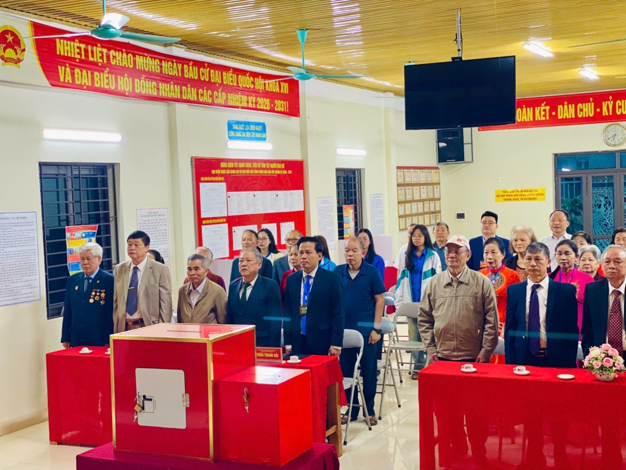 Tại khu vực bỏ phiếu số 02, không khí bầu cử diễn ra nghiêm túc, dân chủ; đông đảo cử tri trên địa bàn đang tích cực tham gia thực hiện quyền và nghĩa vụ công dân của mình.