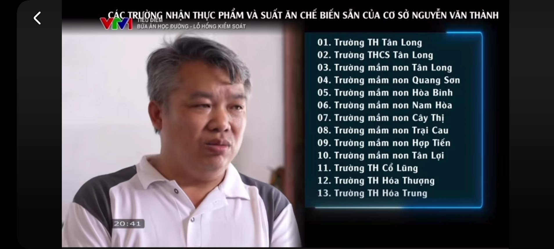 Đối với Trường Tiểu học Tân Long (có địa chỉ tại tổ 29, phường Quan Triều), nhà trường đã có báo cáo khẳng định không liên quan đến cơ sở cung cấp suất ăn chế biến sẵn của ông Nguyễn Văn Thành (xã Vô Tranh, tỉnh Thái Nguyên) như thông tin được đề cập trong chương trình truyền hình trên VTV1. Hiện nay, nhà trường ký hợp đồng cung cấp suất ăn học đường với Công ty cổ phần Tập đoàn VAS Group, có địa chỉ tại ngõ 226, đường 3 tháng 2, tổ 9, phường Tích Lương, tỉnh Thái Nguyên; đại diện là ông Vũ Xuân Trường. Đơn vị cung cấp bảo đảm đầy đủ điều kiện pháp lý theo quy định.